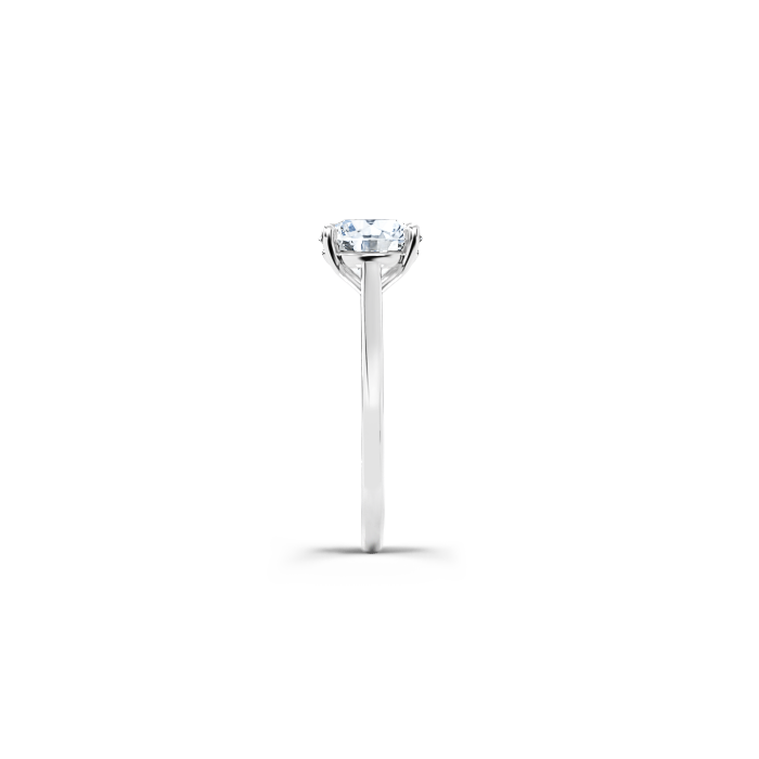 A solitaire ring without side stones is a ring featuring a single central diamond, with no additional diamonds on the band. This creates a clean, minimalist, and timeless look.