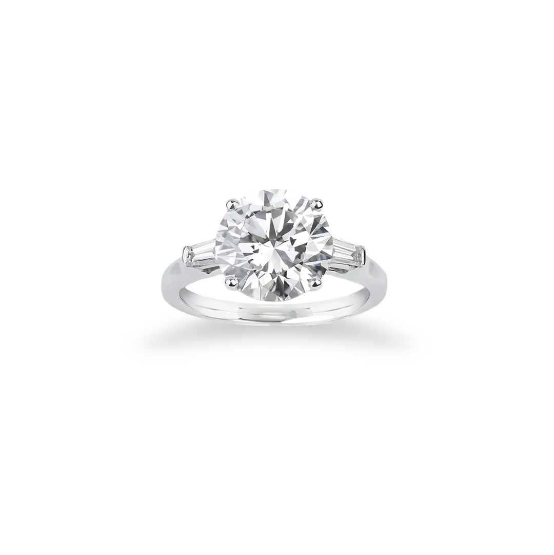 Side Diamonds: This ring has two tapered baguette cut side diamonds. The total carat weight can vary depending on center stone and ring size.