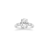 This handmade trilogy ring is for the person that wants something special and unique. The diamond ring features a beautiful Oval Cut Diamond with two matching baguette cut side diamonds.