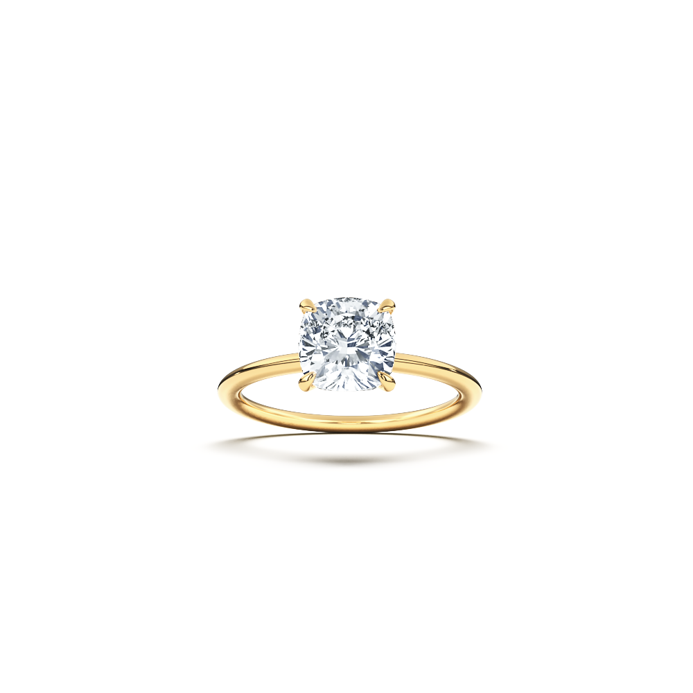 The Elegance Solitaire Ring epitomizes timeless sophistication with its refined and classic design. The gracefully curved band, with its delicate round profile, offers the illusion of a slender, dainty silhouette that subtly enhances the beauty of the finger. At its center, the diamond of your choice is held securely by four meticulously crafted prongs, allowing its stunning clarity and brilliance to take center stage.