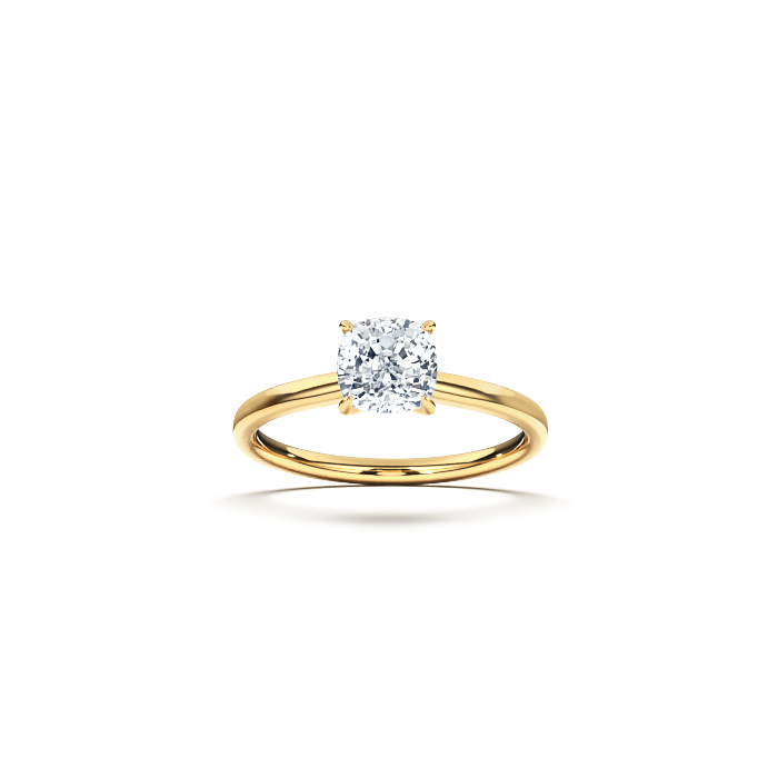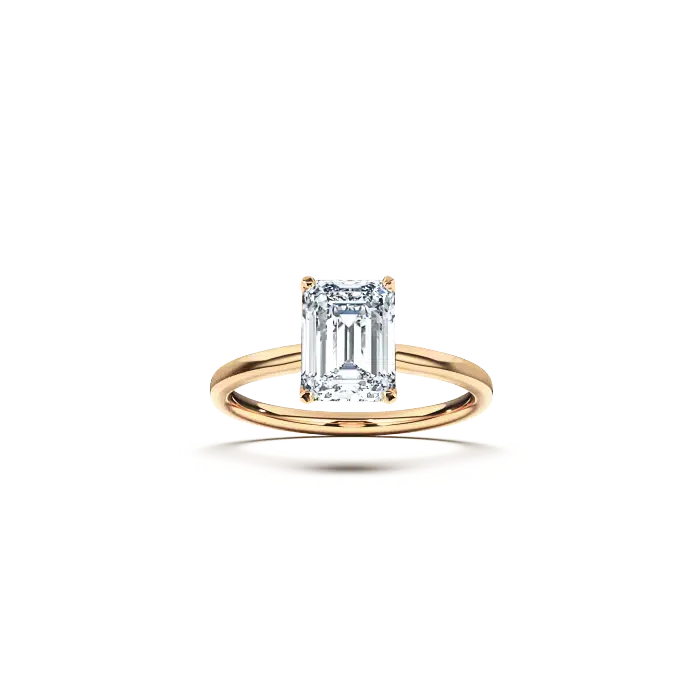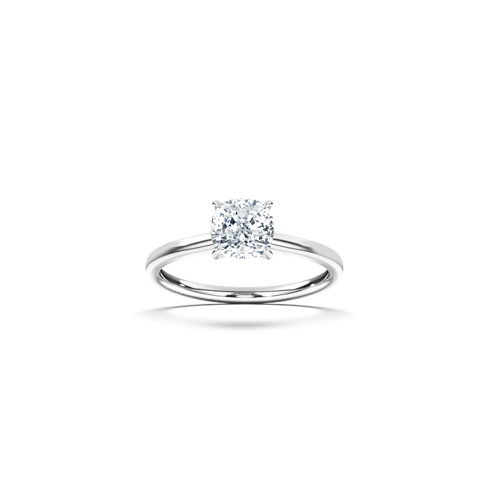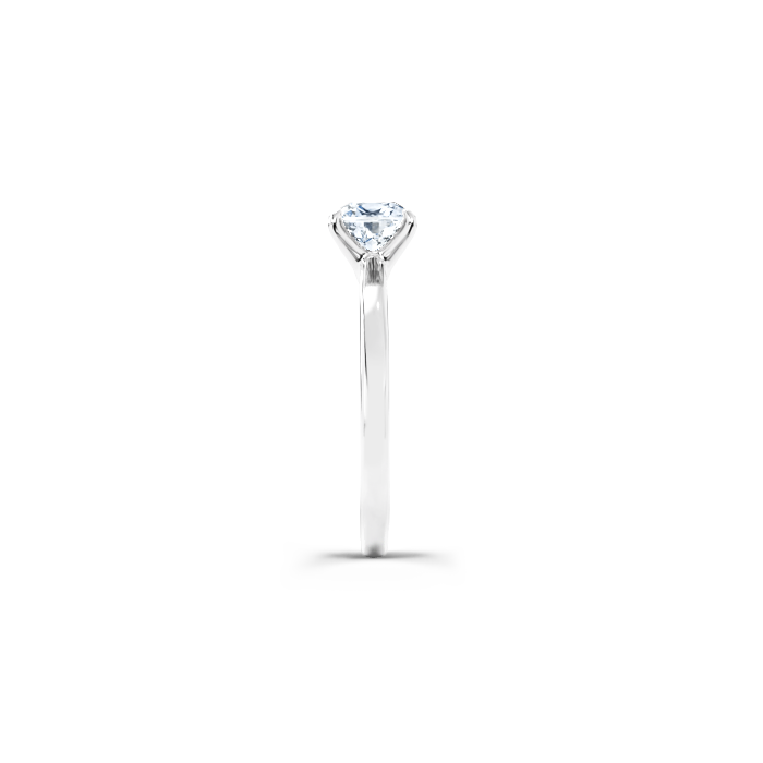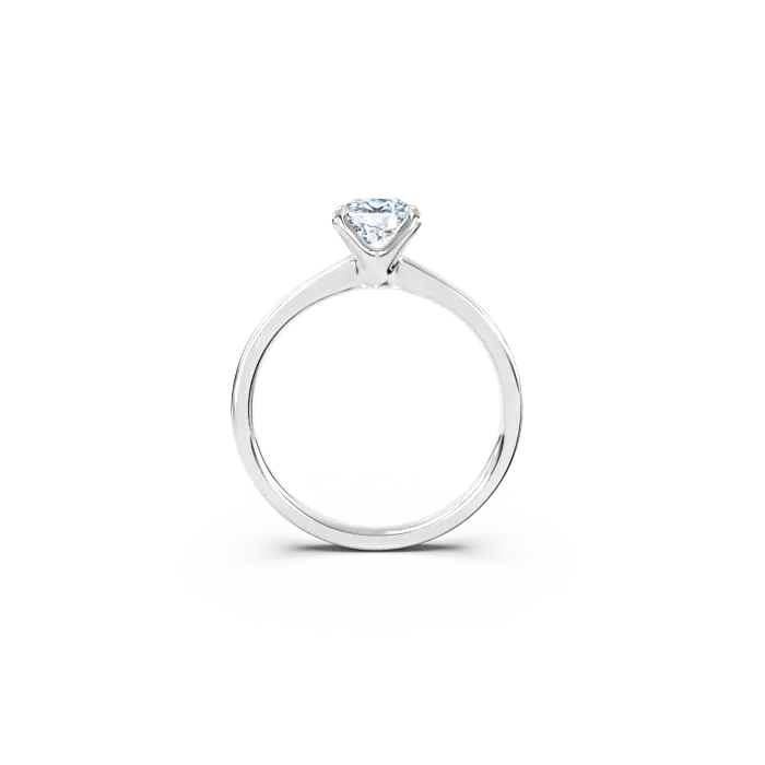 The ‘Signature’ solitaire ring is a beautifully crafted engagement ring with a slightly flatter shank and a secure four-claw setting that holds the diamond. This versatile design can accommodate round brilliant-cut diamonds as well as center stones in various cuts, including cushion, radiant, oval, and emerald. The ring shank maintains a consistent width all the way around, creating a harmonious and elegant silhouette that enhances the beauty of the center stone and creating a beautiful engagement ring.
